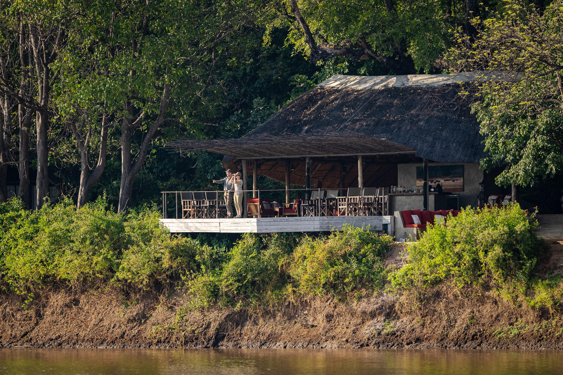 The main area and deck of Nkwali also has the benefit of enjoying both sunrise and sunset views.